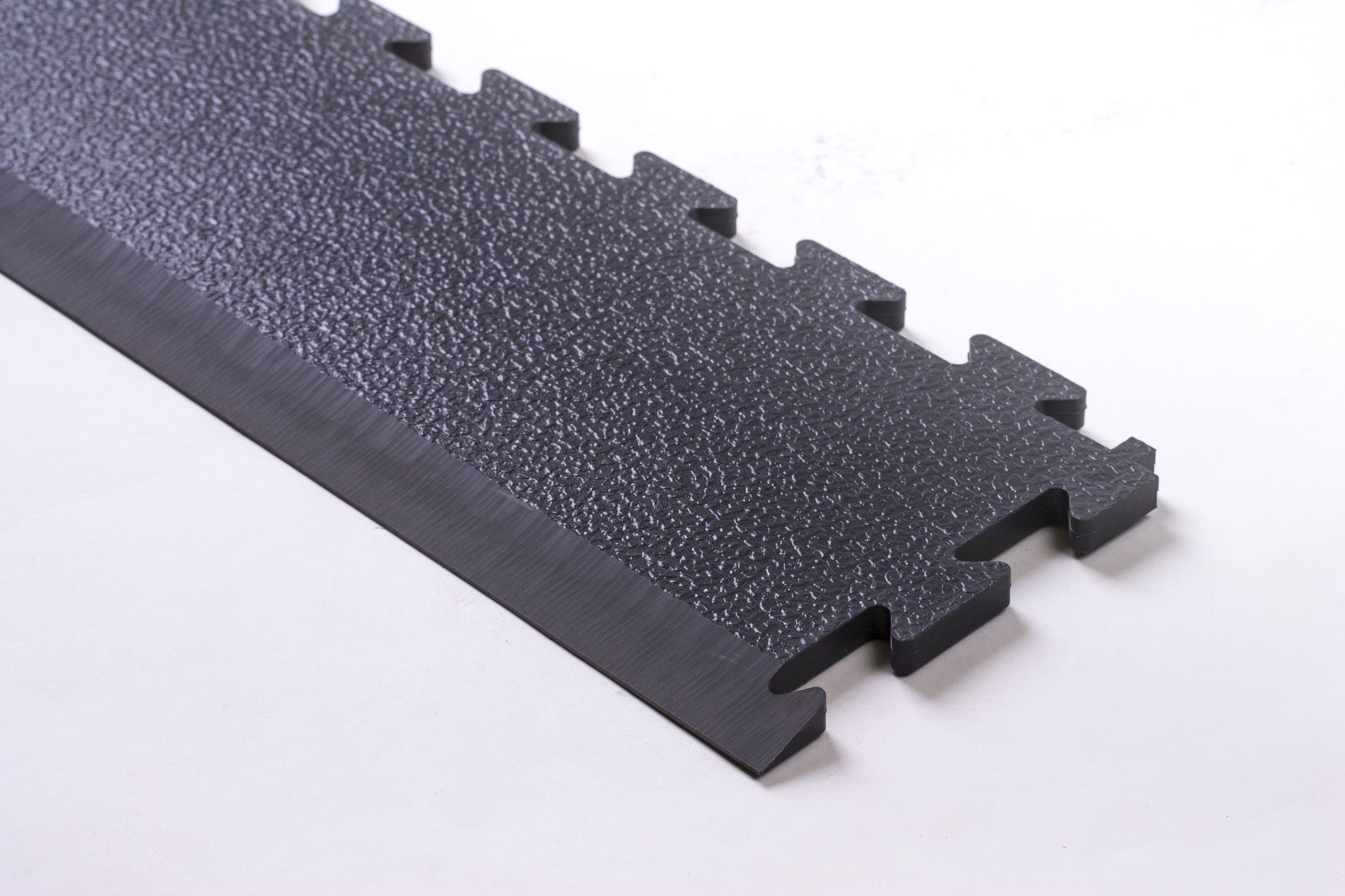 Um Stolperfallen zu vermeiden gibt es für unsere Klassik 10mm PVC-Industriefliese natürlich auch passende Rampen, die ebenfalls mit einer Schwalbenschwanzverbindung versehen sind. Einfach anklicken - fertig. Standard 10mm ist speziell für industrielle und extrem genutze Bereiche entwickelt worden.